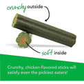 These dental sticks feature a crunchy outer layer that works to cleanse teeth and remove plaque. The soft inner layer helps support healthy gum tissue and freshen breath. Perio Plus Stix are an easy, convenient way to maintain your dog's oral health in-between vet visits. Plus, they have a tasty chicken flavor that dogs love. Sold in 30 ct. bags.
